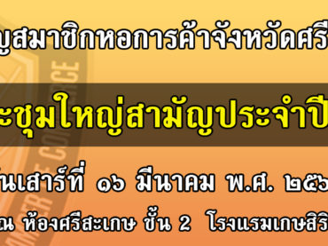ขอเชิญสมาชิกหอการค้าจังหวัดศรีสะเกษ ร่วมประชุมใหญ่สามัญ […]