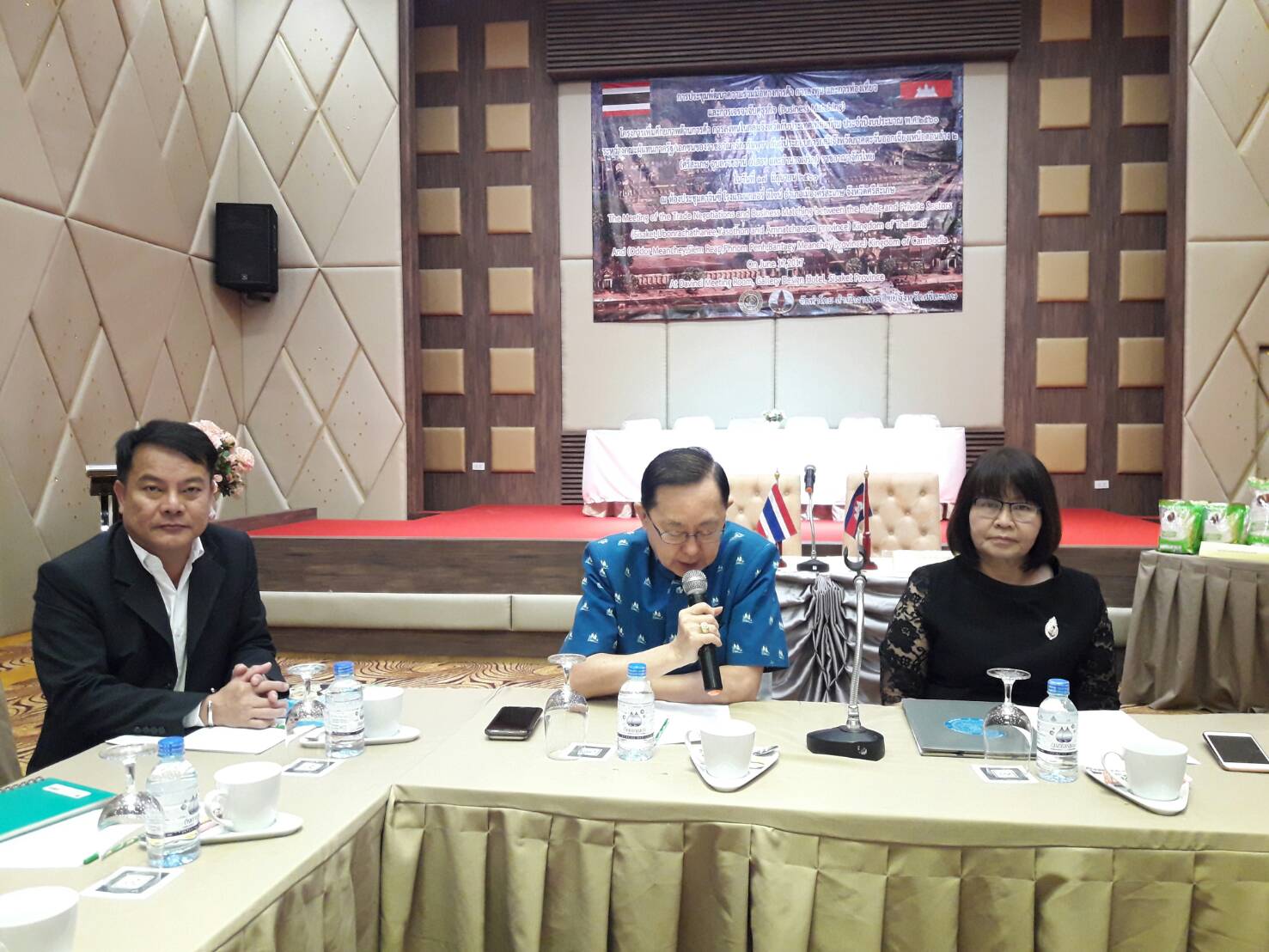 นายวิทยา วิรารัตน์ ประธานหอการค้าจังหวัดศรีสะเกษ พร้อม นายชาญณรงค์ ทวีสาร นายสุรพล ตั้งคณสกุล รองประธานหอการค้าจังหวัดศรีสะเกษ ร่วมการประชุมพัฒนาความร่วมมือทางการค้า การลงทุน และการท่องเที่ยว และการเจรจาจับคู่ธุรกิจ ในวันที่ 17 มิถุนายน 2560 ณ ห้องประชุมดาวินชี่ โรงแรมเดอะแกลอรี่ ดีไซร์ อำเภอเมืองศรีสะเกษ