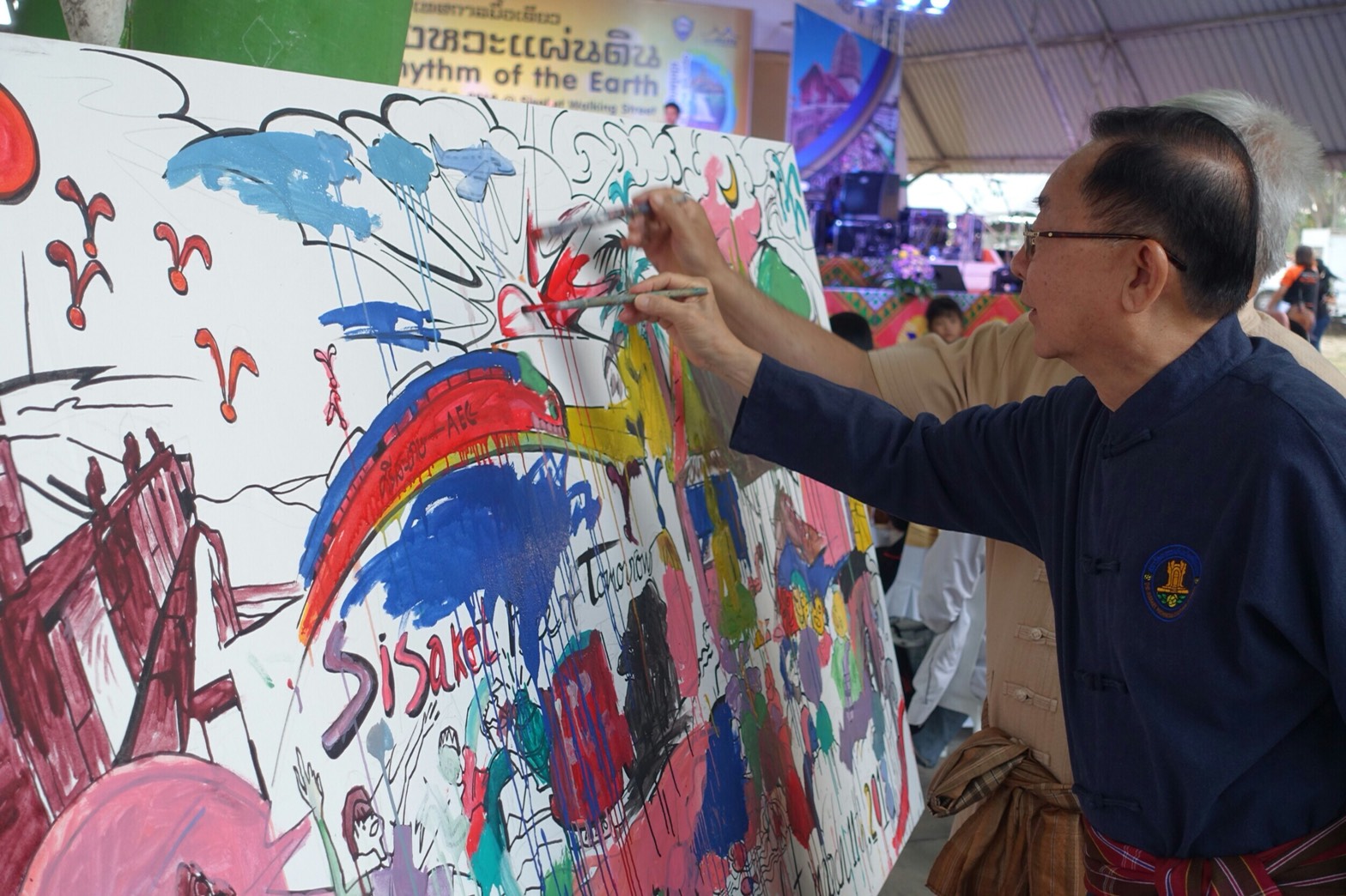 นายวิทยา วิรารัตน์ ประธานหอการค้าจังหวัดศรีสะเกษ นายสุรพล ตั้งคณสกุล รองประธานหอการค้าจังหวัดศรีสะเกษ ร่วมงาน “เทศกาลมื้อเดียว จังหวะแผ่นดิน Rhythm of the earth” เปิดโลกสู่ศรีสะเกษ