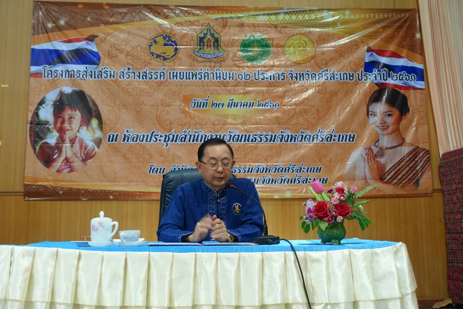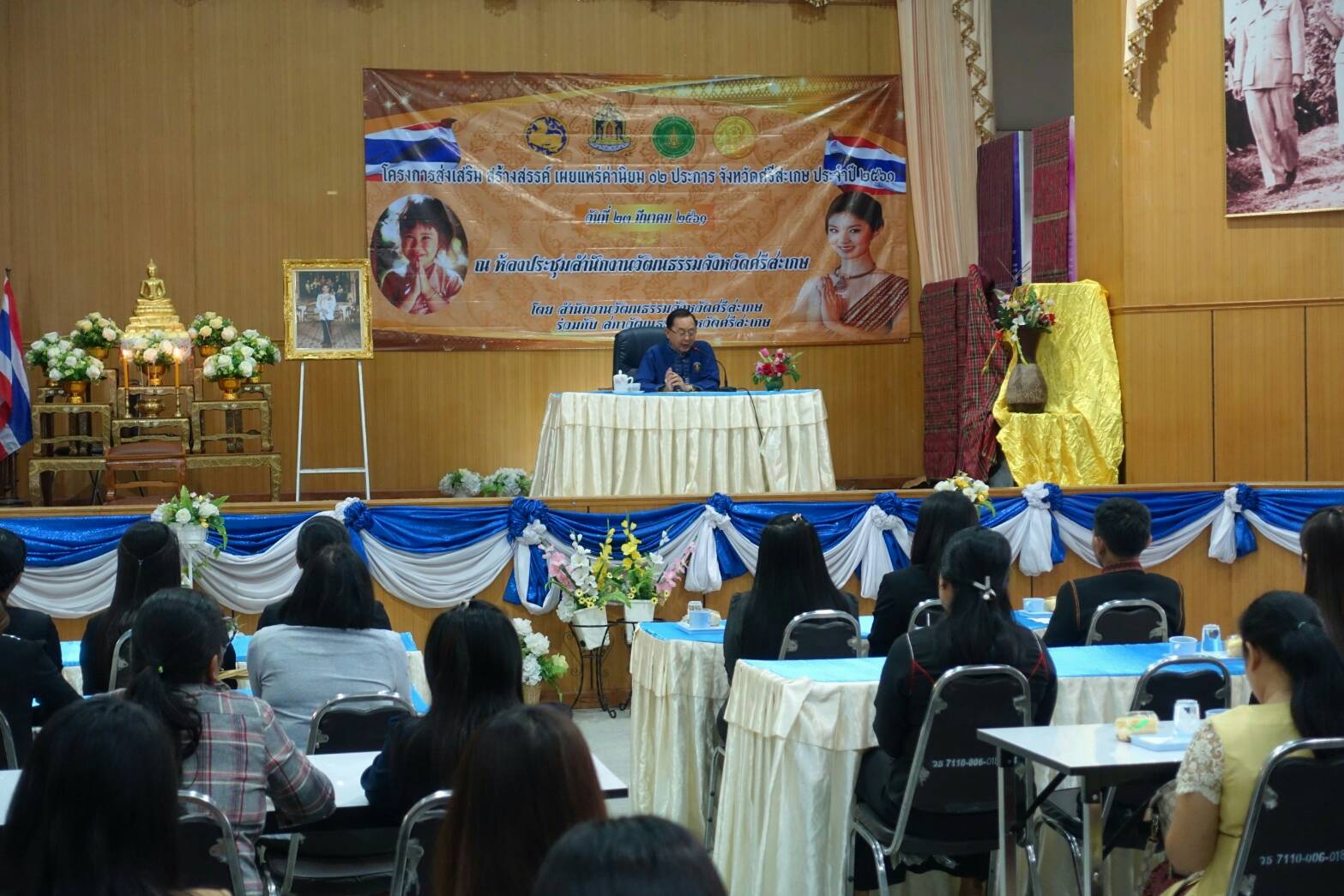 นายวิทยา วิรารัตน์ ประธานหอการค้าจังหวัดศรีสะเกษ เป็นประธานพิธีเปิดการอบรมโครงการส่งเสริม สร้างสรรค์เผยแพร่ค่านิยม 12 ประการ จ.ศรีสะเกษ ประจำปี 2561 ในวันที่ 23 มีนาคม 2561 เวลา 09.00 น. ณ ห้องประชุม สำนักงานวัฒนธรรมจังหวัดศรีสะเกษ