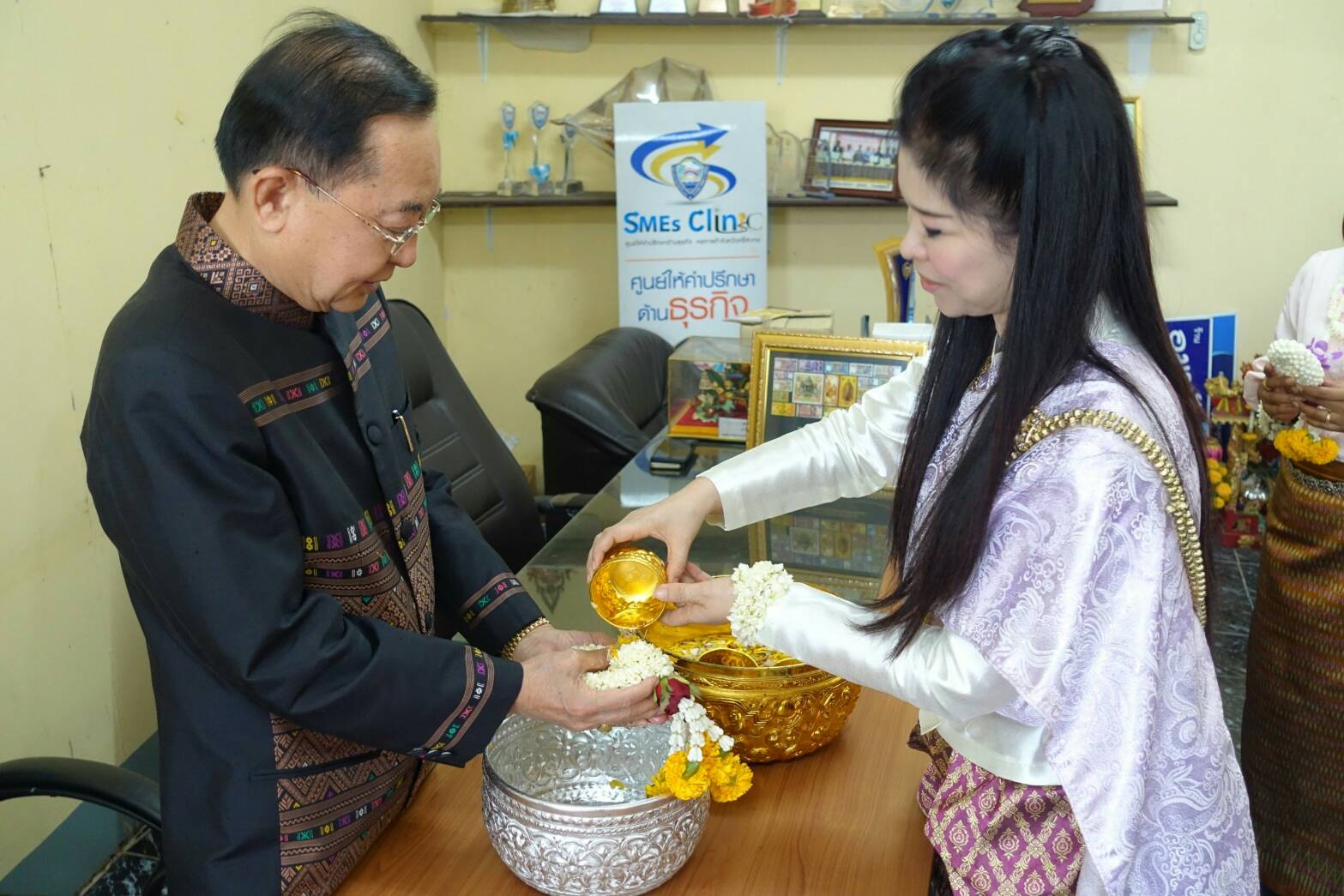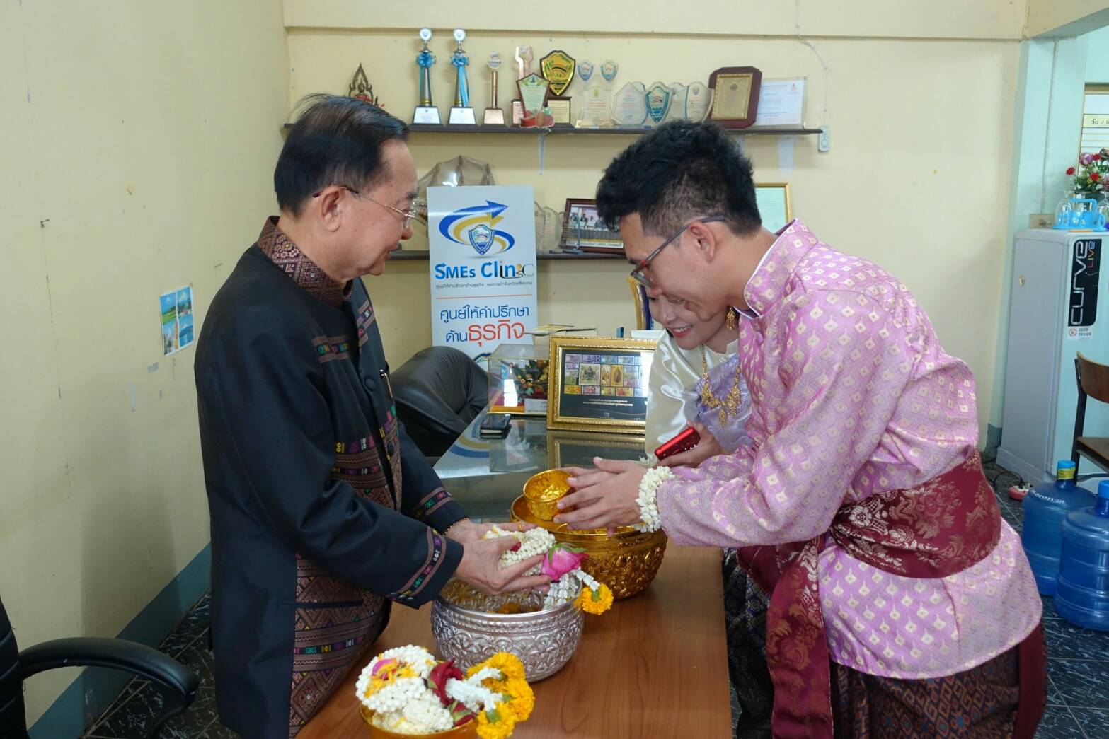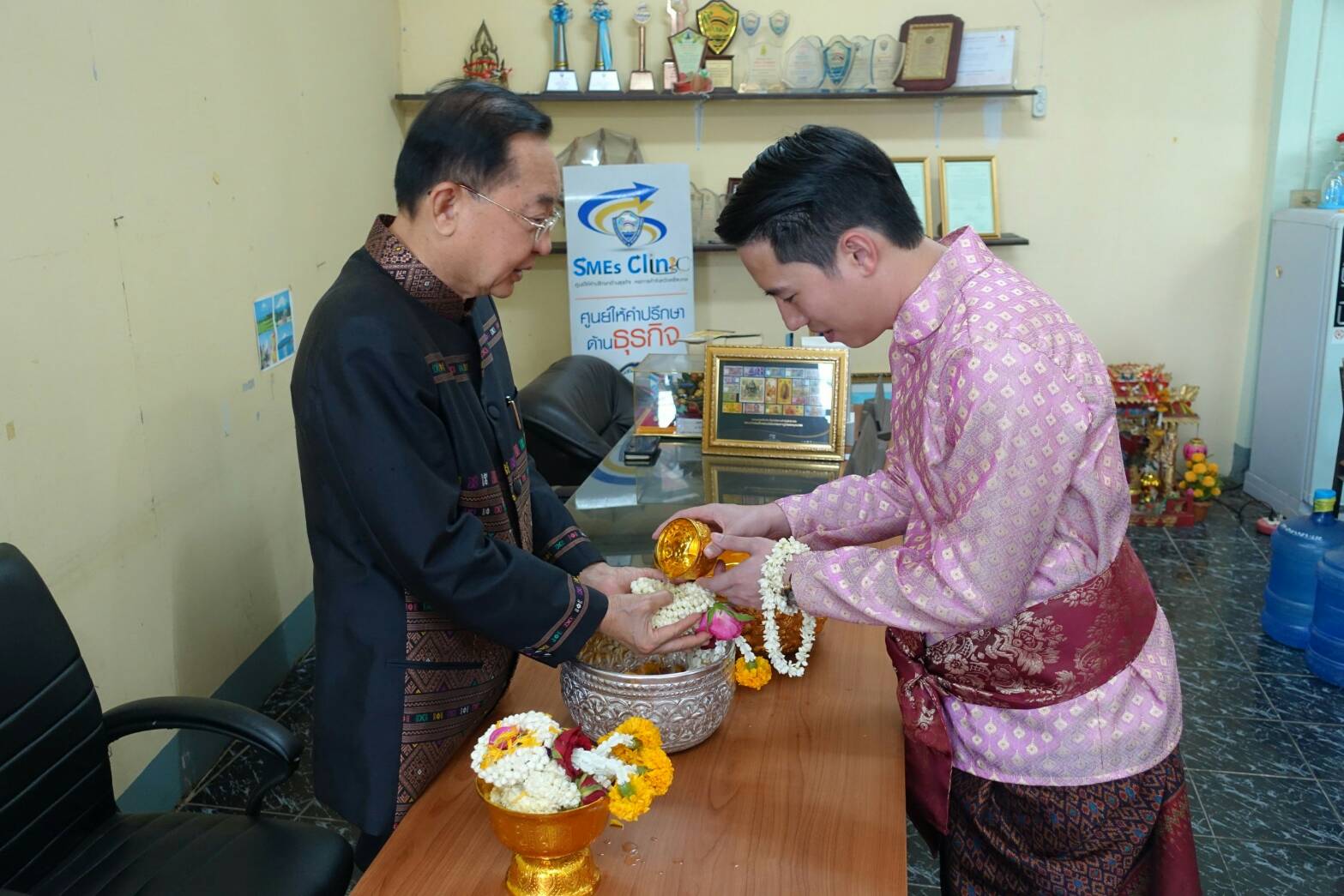 นายสุรพล ตั้งคณสกุล รองประธานหอการค้าจังหวัดศรีสะเกษ นายรัฐวิทย์ อังคสกุลเกียรติ ประธานyec ศรีสะเกษ พร้อมคณะกรรมการหอการค้า คณะกรรมการ yec ร่วมรดน้ำขอพรจาก ท่านวิทยา วิรารัตน์ ประธานหอการค้าจังหวัดศรีสะเกษ ท่านฉัฐมงคล อังคสกุลเกียรติ นายกเทศมนตรีเมืองศรีสะเกษ และ ท่านศรีวรรณ เกียรติสุรนนท์ ที่ปรึกษากิตติมศักดิ์หอการค้าจังหวัดศรีสะเกษ เนื่องในเทศกาลสงกรานต์ ปี 2561