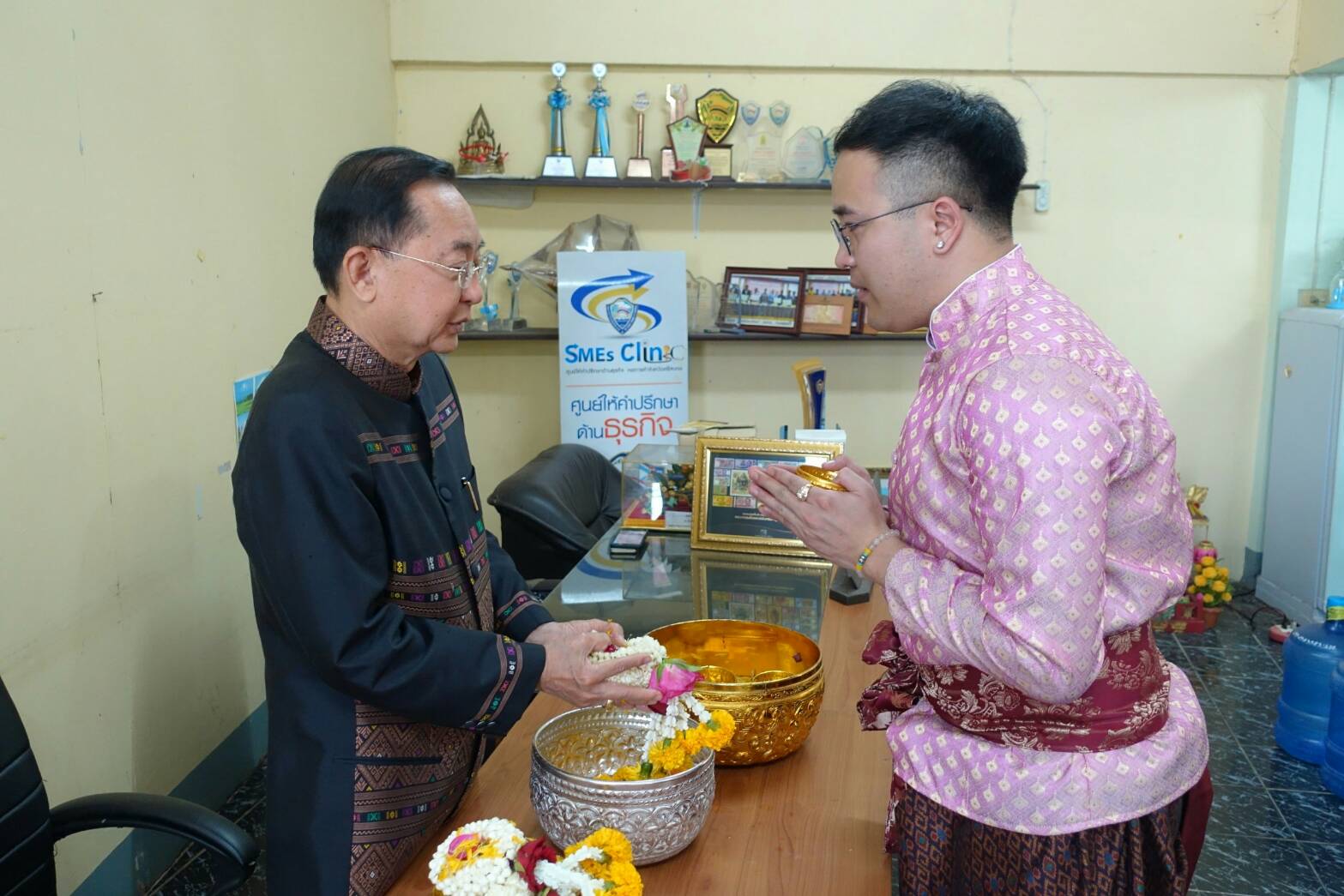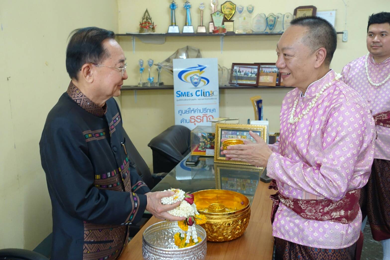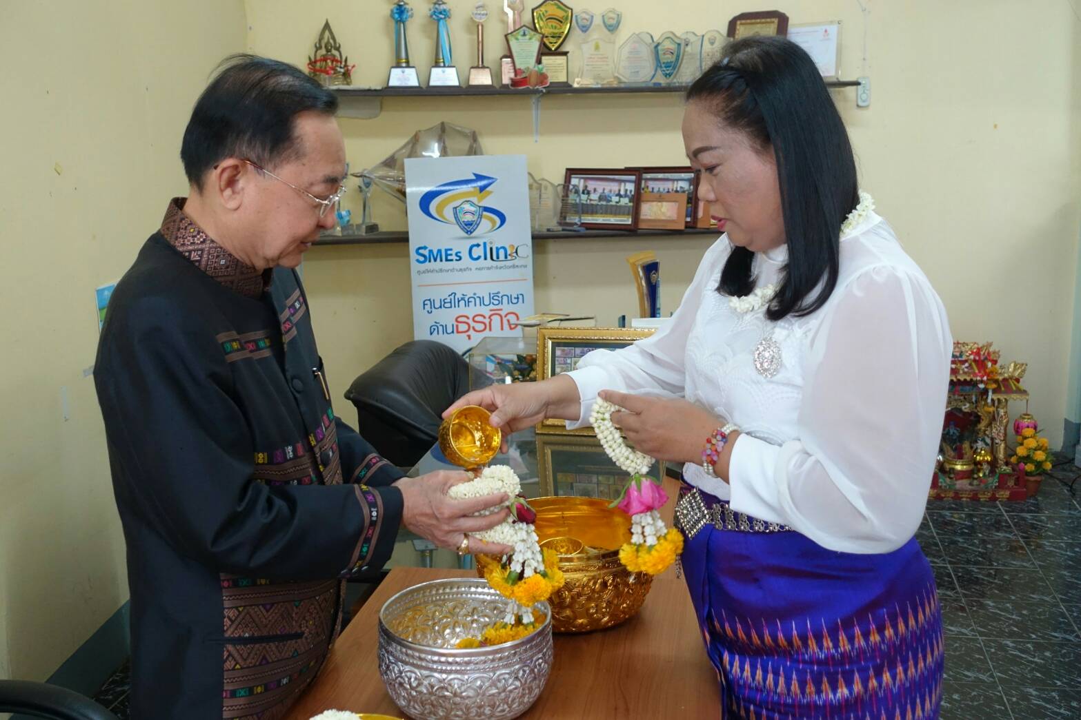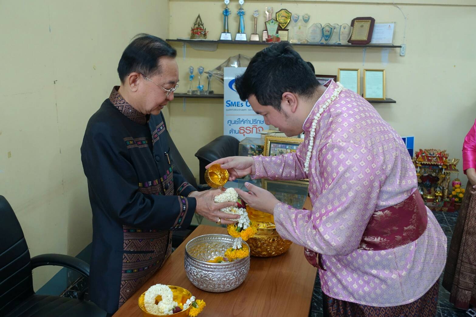 นายสุรพล ตั้งคณสกุล รองประธานหอการค้าจังหวัดศรีสะเกษ นายรัฐวิทย์ อังคสกุลเกียรติ ประธานyec ศรีสะเกษ พร้อมคณะกรรมการหอการค้า คณะกรรมการ yec ร่วมรดน้ำขอพรจาก ท่านวิทยา วิรารัตน์ ประธานหอการค้าจังหวัดศรีสะเกษ ท่านฉัฐมงคล อังคสกุลเกียรติ นายกเทศมนตรีเมืองศรีสะเกษ และ ท่านศรีวรรณ เกียรติสุรนนท์ ที่ปรึกษากิตติมศักดิ์หอการค้าจังหวัดศรีสะเกษ เนื่องในเทศกาลสงกรานต์ ปี 2561