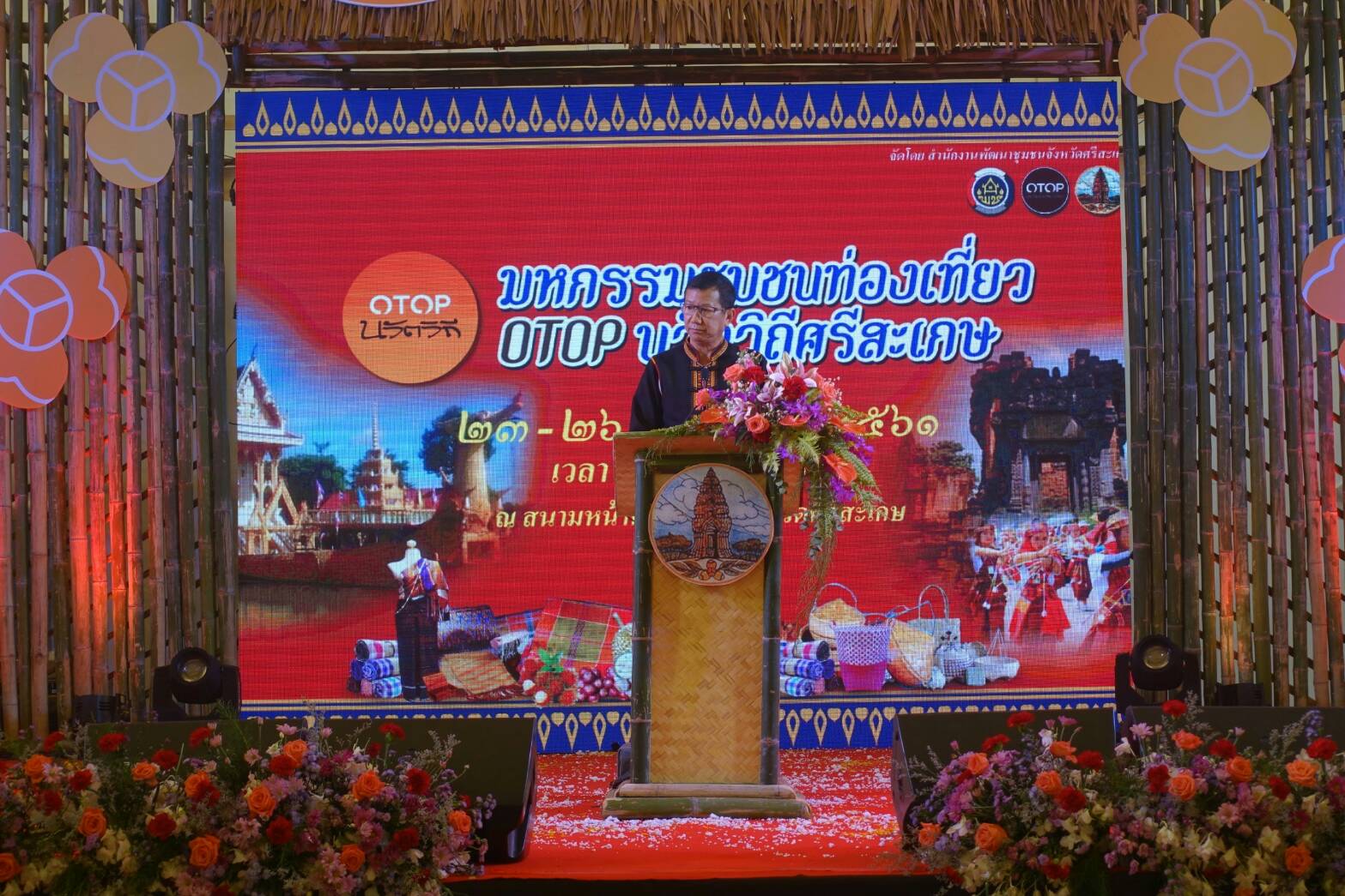 นายวิทยา วิรารัตน์ ประธานหอการค้าจังหวัดศรีสะเกษ พร้อมด้วยนายชาญณรงค์ ทวีสาร นายสุรพล ตั้งคณสกุล รองประธานหอการค้าจังหวัดศรีสะเกษ ร่วมพิธีเปิดงาน “มหกรรมชุมชนท่องเที่ยว OTOP นวัตวิถี ศรีสะเกษ” ในวันที่ 24 กันยายน 2561 เวลา 15.30 น. ณ บริเวณสนามหน้าศาลากลาง จังหวัดศรีสะเกษ