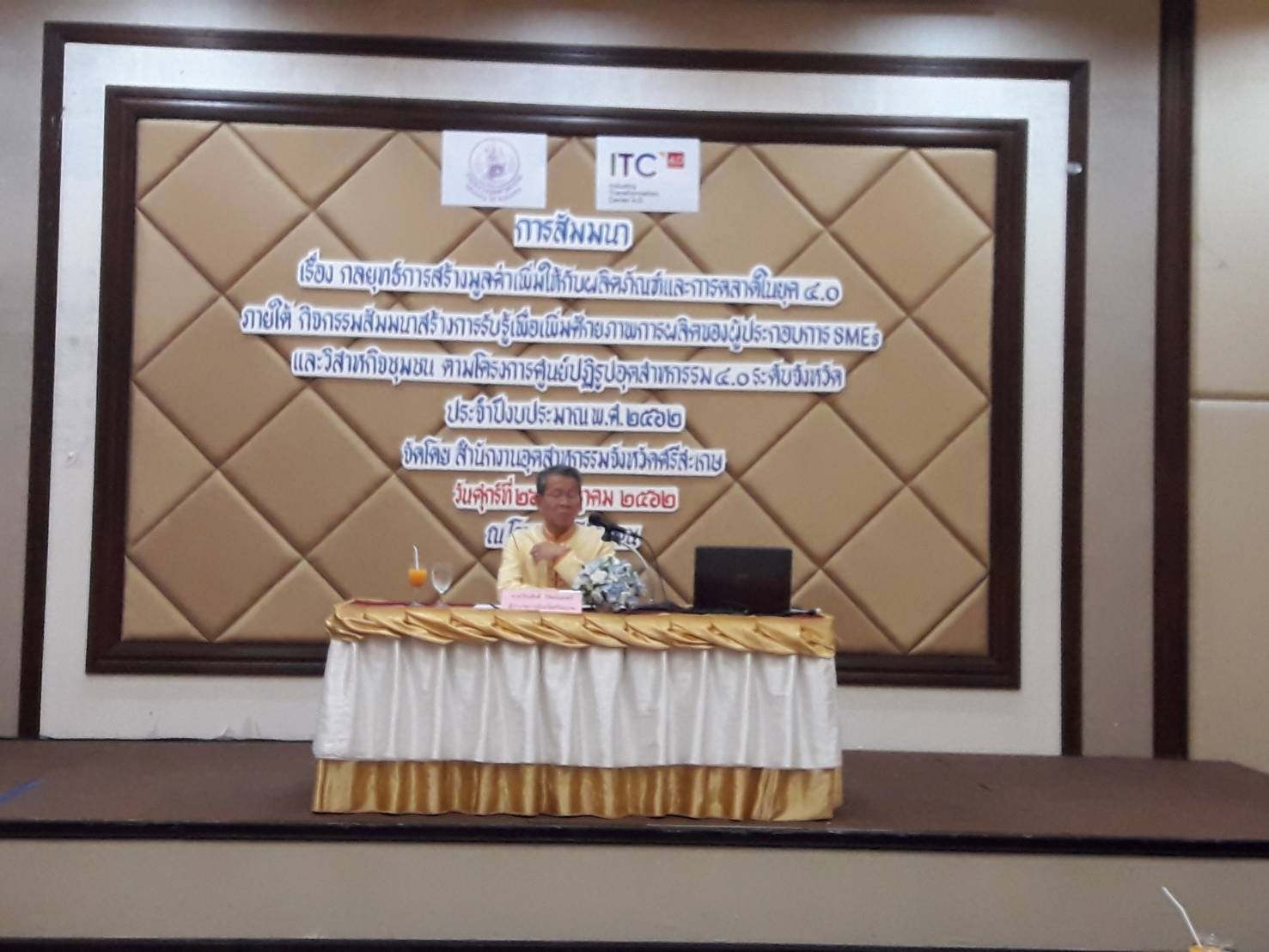 นายวัชรชัย อมรพิมลธรรม รองประธานหอการค้าจังหวัดศรีสะเกษเข้าร่วมพิธี เปิดกิจกรรมสัมมนาเรื่องกลยุทธ์การสร้างมูลค่าเพิ่มให้กับผลิตภัณฑ์และตลาดยุค 4.0 ภายใต้กิจกรรมสัมมนาสร้างการรับรู้ เพื่อเพิ่มศักยภาพการผลิตของผู้ประกอบการ SMEs และวิสาหกิจชุมชนตามโครงการศูนย์ ปฏิรูปอุตสาหกรรม 4.0 ระดับจังหวัดประจำปีงบประมาณ 2562 เพื่อส่งเสริมผู้ประกอบการ SMEs และวิสาหกิจชุมชน พื้นที่ศูนย์ปฏิรูปอุตสาหกรรมระดับภูมิภาค ในการพัฒนาผลิตภัณฑ์ต้นแบบที่ใช้เทคโนโลยีนวัตกรรมที่สูงขึ้น ในวันที่ 26 กรกฎาคม 2562 เวลา 10.00 น. ณ ห้องศรีลำดวน 2 โรงแรมศรีลำดวนจังหวัดศรีสะเกษ