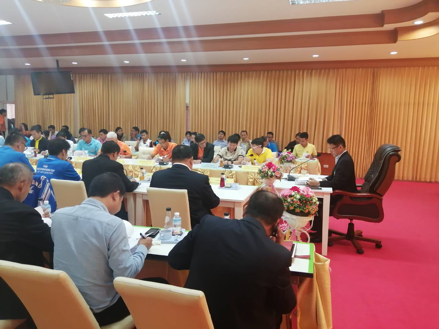 นายสฤษฏ์ นาควารินทร์ ประธานหอการค้าจังหวัดศรีสะเกษ พร้อม นายสมโภชน์ ธุวธารางกูร รองประธานหอการค้า นายรัฐวิทย์ อังคสกุลเกียรติ เลขาธิการหอการค้าจังหวัดศรีสะเกษ ร่วมประชุมคณะอนุกรรมการจัดการแข่งขันกีฬาบาสเกตบอลชาย SAT-Sisaket Basketball Word Invition วันศุกร์ที่ 16 สิงหาคม 2562 เวลา 13.30 น. ณห้องประชุมพนรัตน์ มหาวิทยาลัยการกีฬาแห่งชาติ วิทยาเขตศรีสะเกษ