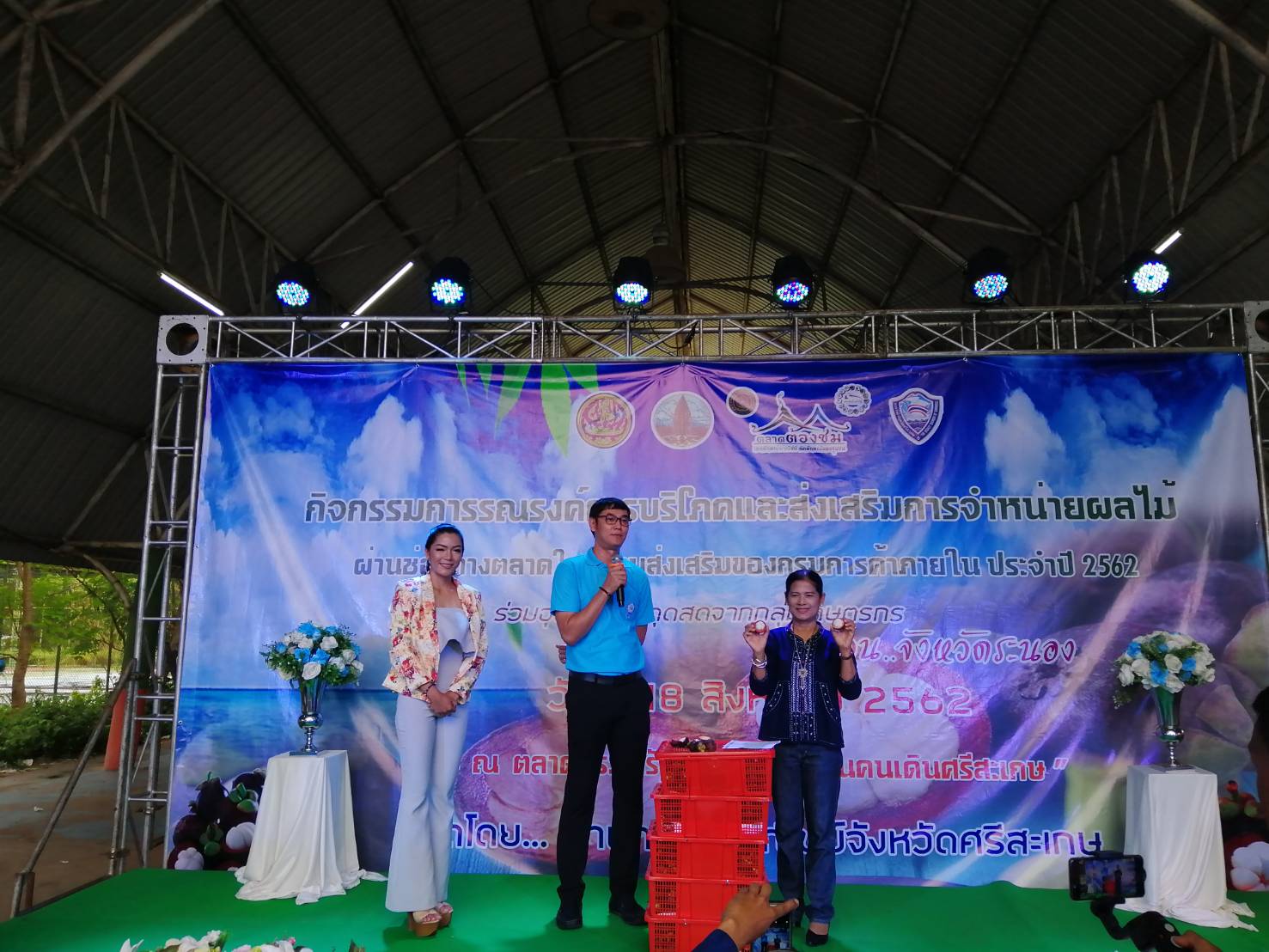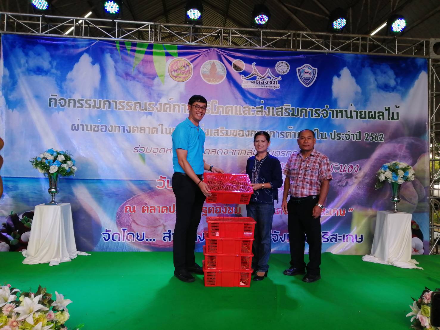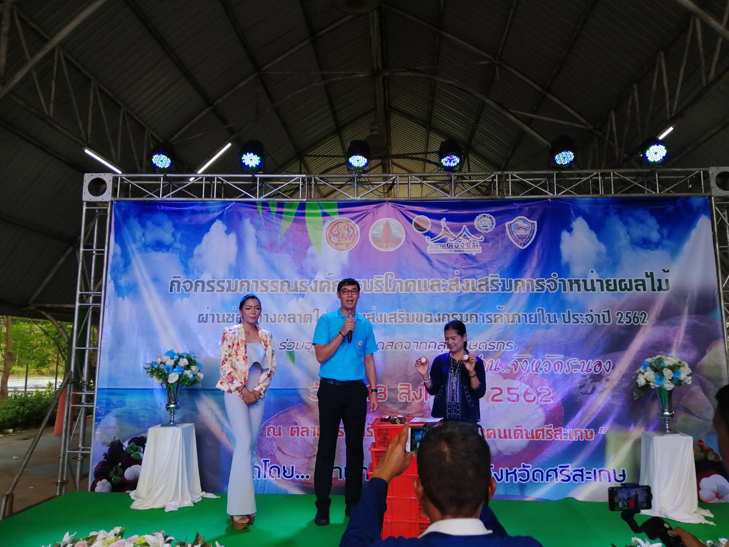 นายสฤษฏ์ นาควารินทร์ ประธานหอการค้าจังหวัดศรีสะเกษ ร่วมกิจกรรมการรณรงค์การบริโภคและส่งเสริมการจำหน่ายผลไม้ผ่านช่องทางตลาดในความส่งเสริมของกรมการค้าภายใน ประจำปี 2562 วันอาทิตย์ที่ 18 สิงหาคม 2562 เวลา 16.00 ณ ถนนคนเดินศรีสะเกษ จังหวัดศรีสะเกษ