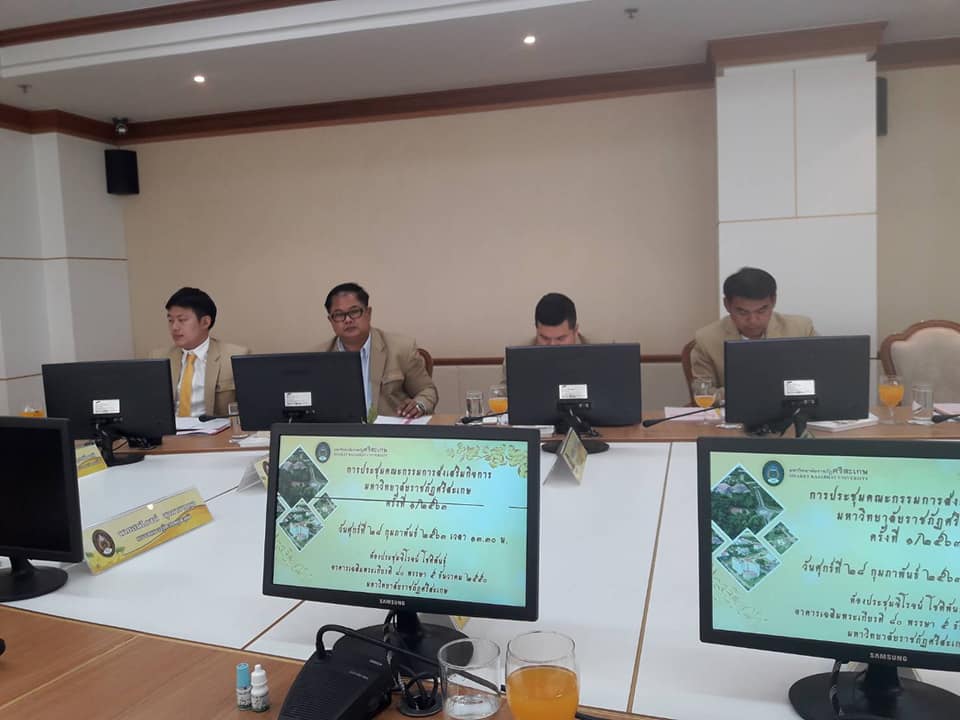 นายสฤษฏ์ นาควารินทร์ ประธานหอการค้าจังหวัดศรีสะเกษ นายรัฐวิทย์ อังคสกุลเกียรติ เลขาธิการหอการค้าจังหวัดศรีสะเกษ นายสมโภชน์ ธุวธารางกูร นายบัณฑิต เพิ่มบุญ รองประธานหอการค้าจังหวัดศรีสะเกษ นายภูวนัตถ์ มหาสุวีระชัย ประธาน YEC SISAKET นายกิตติวัฒน์ เกียรติสุรนนท์ รองเลขาธิการหอการค้าจังหวัดศรีสะเกษ ร่วมประชุมคณะกรรมการส่งเสริมกิจการมหาวิทยาลัย ครั้งที่ 1/2563 ในวันที่ 28 กุมภาพันธ์ 2563 เวลา 13.30 น. ณ ห้องประชุมจิโรจน์โชติพันธุ์ ชั้น 5 อาคารเฉลิมพระเกียรติ 80 พรรษา 5 ธันวาคม 2550 ม.ราชภัฏศรีสะเกษ
