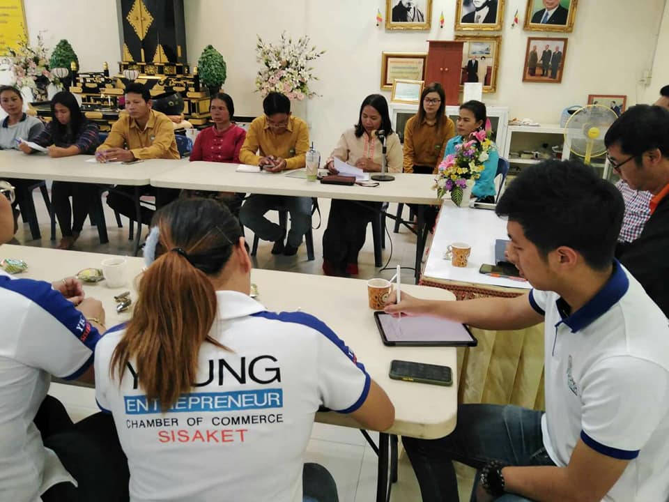 นายสฤษฏ์ นาควารินทร์ ประธานหอการค้าจังหวัดศรีสะเกษ นางอรพิน ภูนาสูง รองประธานหอการค้า นายภูวนัตถ์ มหาสุวีระชัย ประธาน YEC Sisaket คณะกรรมการ YEC Sisaket ลงพื้นที่สหกรณ์โคเนื้อดอกลำดวน เพื่อติดตามและประสานให้ความรู้เพิ่มเติม ณ สหกรณ์โคเนื้อดอกลำดวน ตำบลกุดสมิง อำเภอเบญจลักษ์ จังหวัดศรีสะเกษ