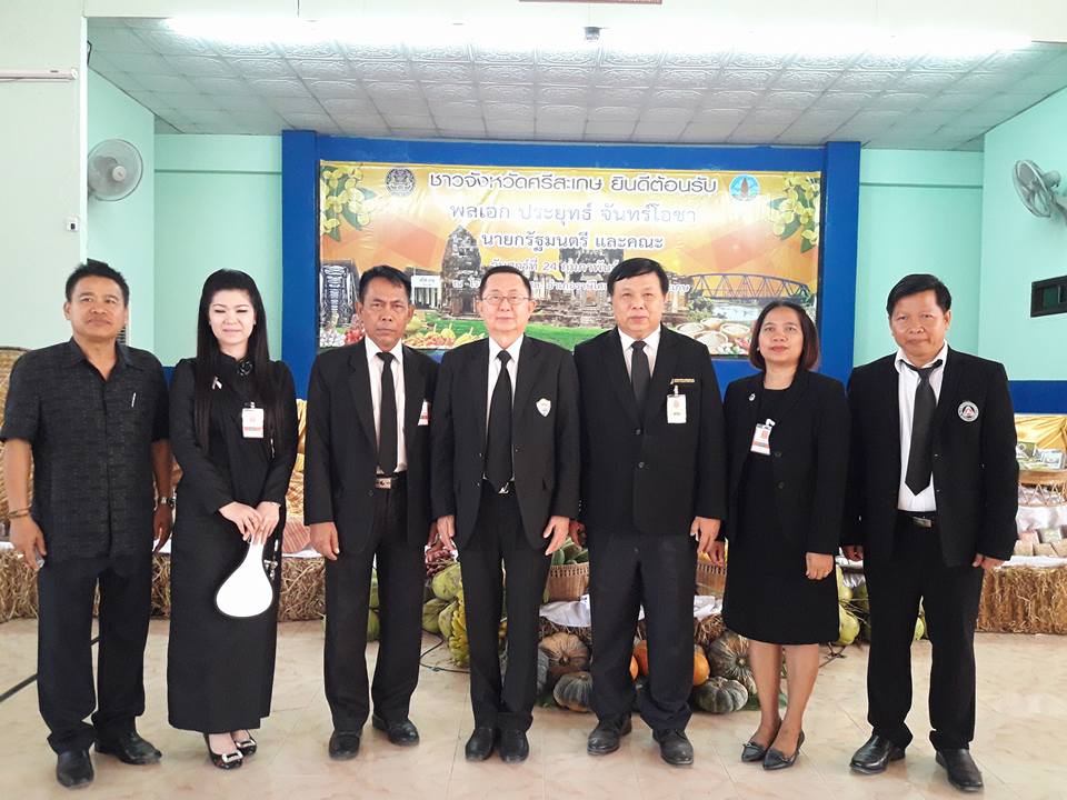 นายวิทยา วิรารัตน์ ประธานหอการค้าจังหวัดศรีสะเกษ นายวีระ ไตรสรณกุล ประธานสภาอุตสาหกรรมจังหวัดศรีสะเกษ นายรัฐวิทย์ อังคสกุลเกียรติ เลขาธิการหอการค้าจังหวัดศรีสะเกษ ประธานyec sisaket พร้อมคณะกรรมการหอการค้า กรรมการสภาอุตสาหกรรมจังหวัดศรีสะเกษ ร่วมต้อนรับพลเอกประยุทธ์ จันทร์โอชา นายกรัฐมนตรีและคณะ ณ โรงเรียนราษีไศล