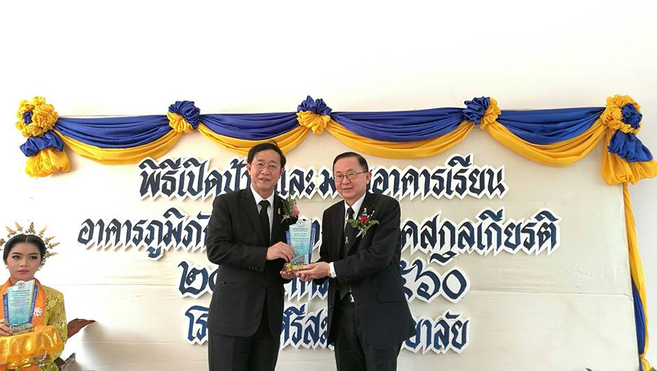 นายวิทยา วิรารัตน์ ประธานหอการค้าจังหวัดศรีสะเกษ พร้อมด้วย นายสมโภชน์ ธุวธารางกูร กรรมการหอการค้าจังหวัดศรีสะเกษ และ นายกิตติวัฒน์ เกียรติสุรนนท์ รองประธาน YEC sisaket ร่วมเป็นเกียรติในพิธีเปิดป้ายและมอบอาคารเรียน อาคารภูมิภักดี และ อาคารอังคสกุลเกียรติ ในวันที่ 24 มีนาคม 2560 เวลา 09.30 น. ณ โรงเรียนศรีสะเกษวิทยาลัย