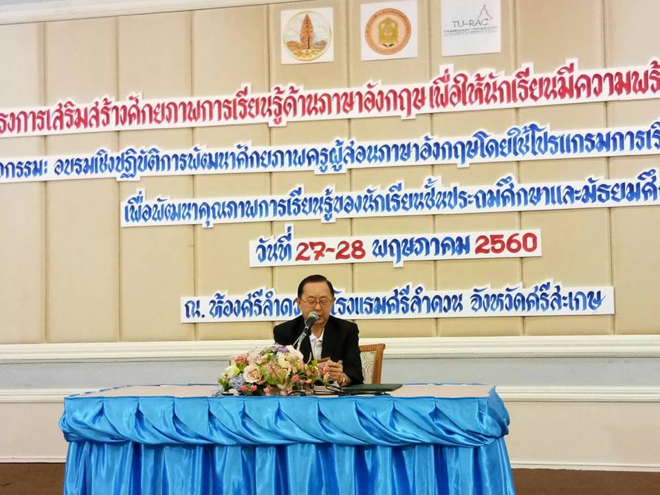 นายวิทยา วิรารัตน์ ประธานหอการค้าจังหวัดศรีสะเกษ ร่วมพิธีเปิดโครงการเสริมสร้างศักยภาพการเรียนรู้ด้านภาษาอังกฤษเพือให้นักเรียนมีความพร้อมเป็นพลเมืองอาเซียน ในวันที่ 27 พฤษภาคม 2560 เวลา 09.00 น. ณ ห้องศรีลำดวน โรงเเรมศรีลำดวน จังหวัดศรีสะเกษ